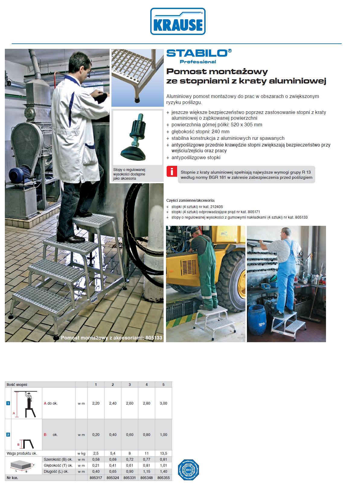 805324 KRAUSE Pomost montażowy ze stopniami z kratki stalowej 2 stopnie