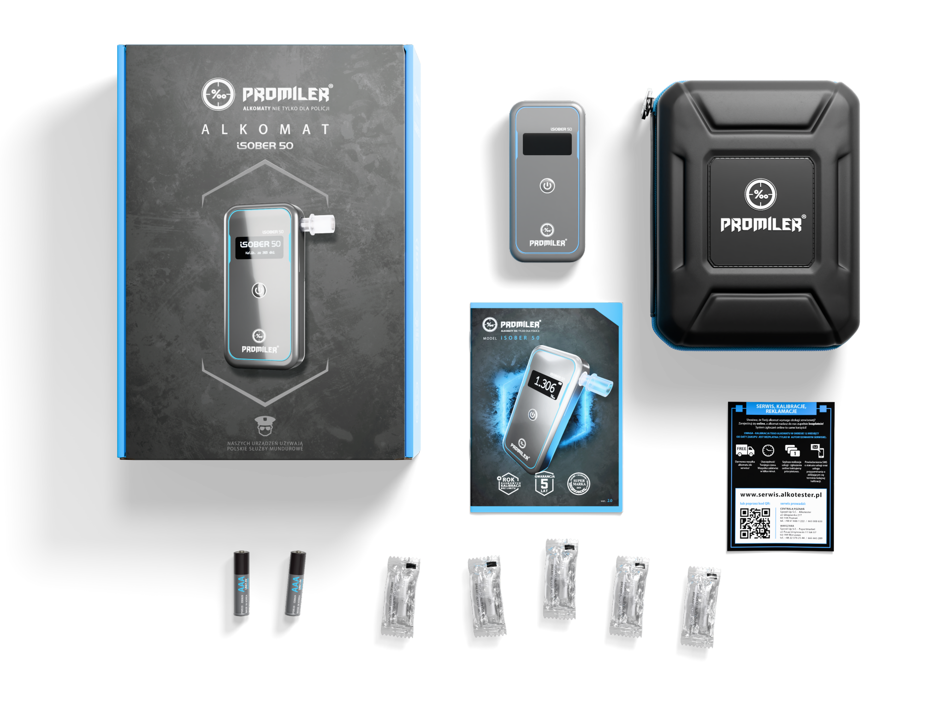 O najwyższej jakości naszych alkomatów przekonało się już wielu klientów, w tym SŁUŻBY MUNDUROWE. Przez ponad 15 lat naszej obecności w branży alkomatów dowiedliśmy, że oferujemy wyłącznie sprawdzone i profesjonalne urządzenia pomiarowe. Na alkomat PROMILER iSOBER 50 udzielamy aż 5 lat gwarancji!
