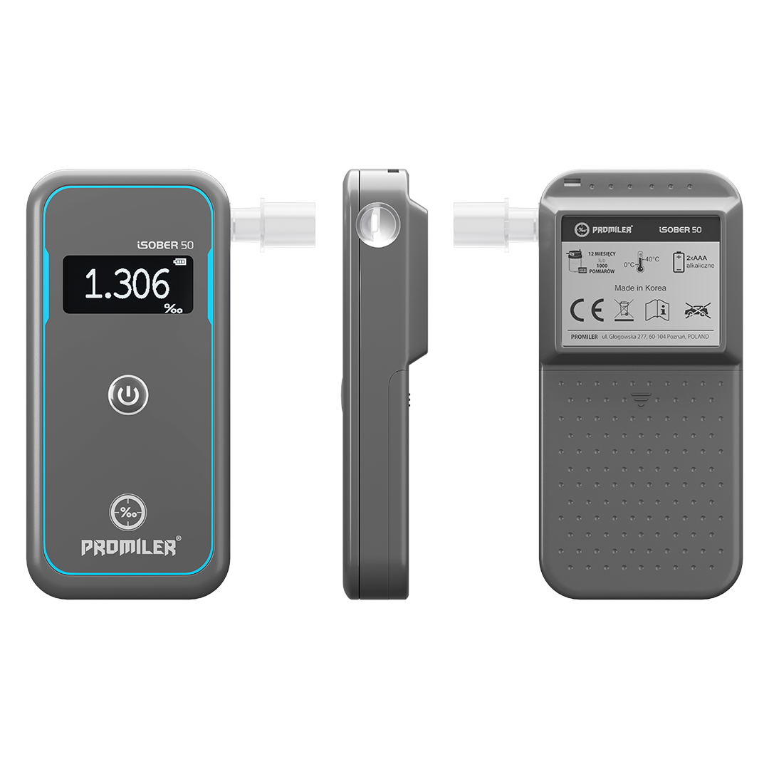 Alkomat PROMILER iSOBER 50 to najnowszy model w ofercie PROMILER, łączący zaawansowaną technologię i niezrównaną precyzję. Przy pomocy platynowego sensora QMol 4.0 gwarantuje błyskawiczne i dokładne wyniki.