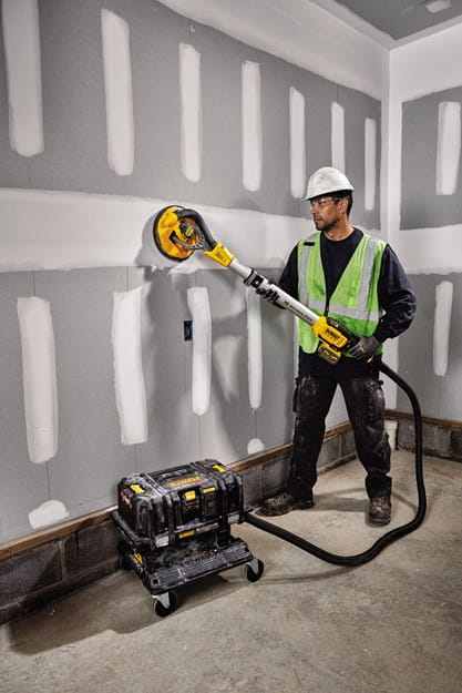 Akumulatorowa szlifierka do płyt gipsowo-kartonowych DCE800 wyposażona jest w silnik bezszczotkowy, aby zwiększyć czas pracy, trwałość i niezawodność. Złącze AIRLOCK (TM) pozwala na podłączenie odkurzacza DEWALT i zmniejszenie ilości pyłu. Teleskopowa rękojeść i głowica przegubowa pozwalają użytkownikom lepiej i wygodniej dotrzeć do miejsca pracy.
