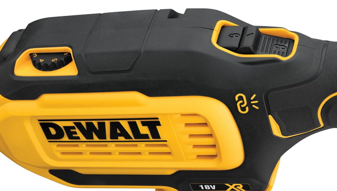 Aby skutecznie usunąć potencjalnie szkodliwy kurz z miejsca pracy, narzędzie jest wyposażone w Wireless Tool Control do parowania z odkurzaczami akumulatorowymi DEWALT, polecamy DCV586M.