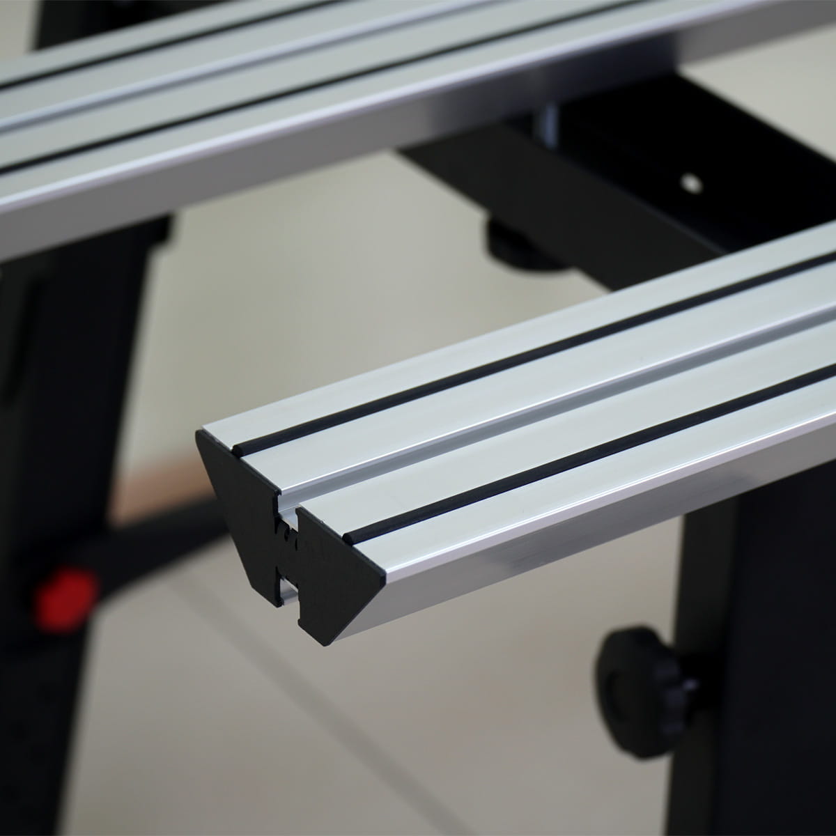 Wzmocniony profil aluminiowy o szerokości 100 mm z gumowymi wkładkami oznacza brak wibracji. Teraz płytek nie trzeba dodatkowo mocować.