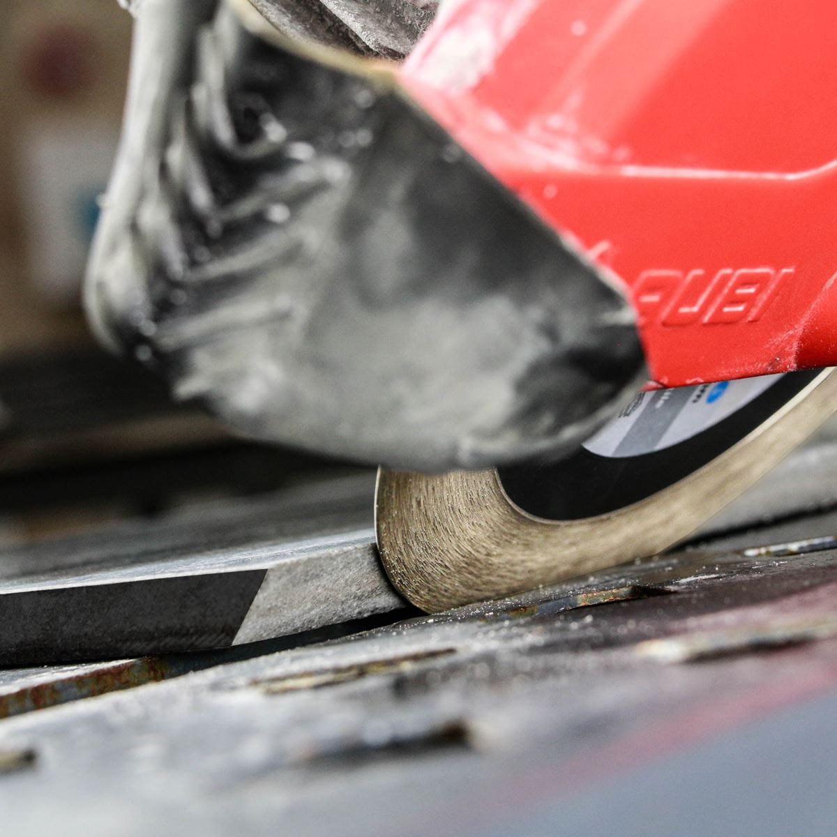 Tarcza diamentowa 1A1R Edge rozwiązuje te problemy. Jest stworzona do cięcia ceramiki pod kątem 45 stopni.