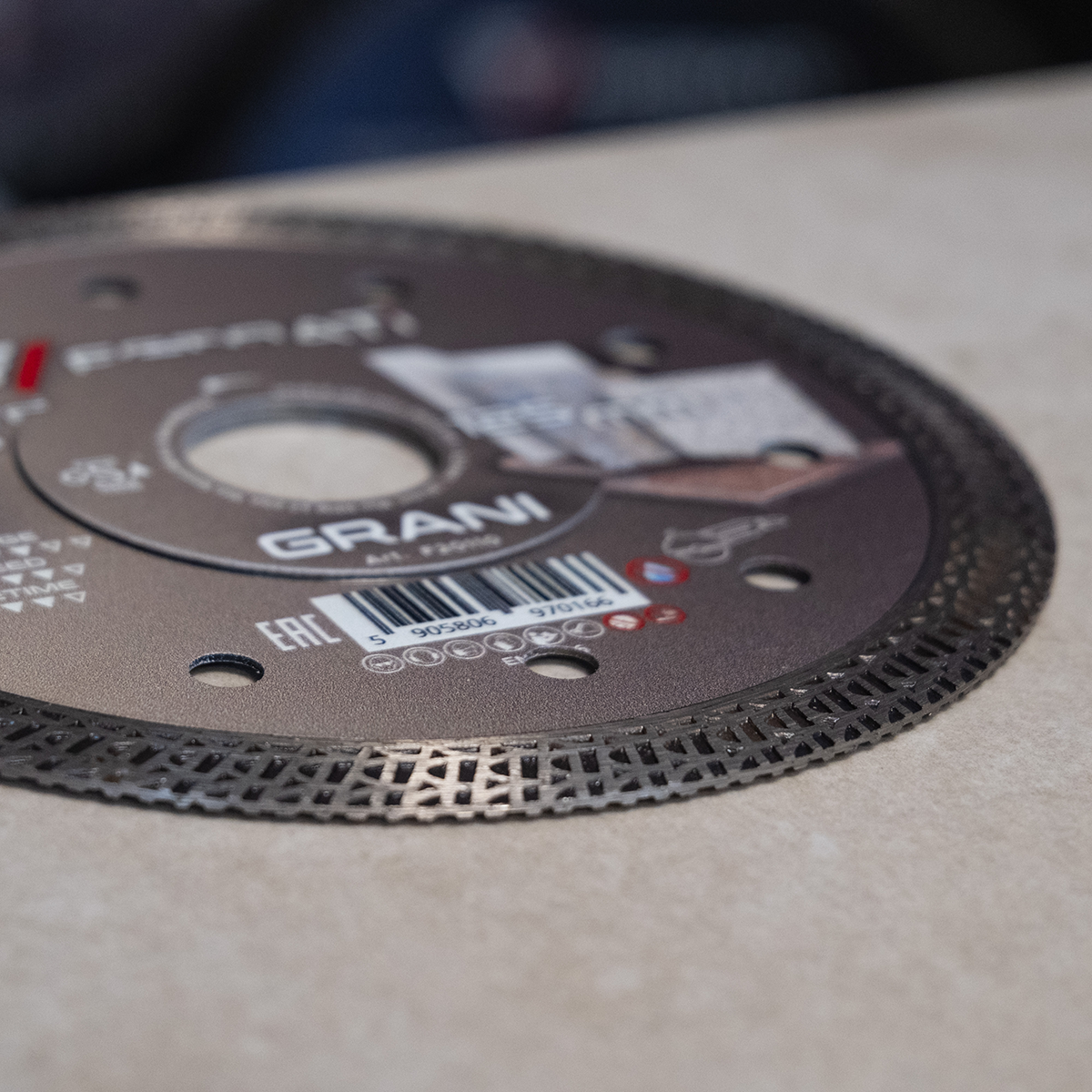 Stworzona do wykonywania cięć szybszych z umiarkowaną precyzją. Idealnie sprawdza się przy cięciu prostym i pod kątem twardego gresu, spieku porcelanowego i kwarcowego, płyt gresowych w systemach tarasów wentylowanych, klinkieru i jednokrotnie wypalanej ceramiki grubej. Dobrze skorelowana grubość dysku z kształtem ściernicy przyczynia się do spektakularnej wydajności cięcia w twardym materiale. Cienkie pasma segmentu z łatwością wrzynają się w gruby i gęsty materiał, a dzięki zminimalizowanemu kontaktowi krawędzi bocznej dynamicznie wytracają wytworzoną w tarciu temperaturę. Dyski tej budowy są żywotne i cenione za efektywność.