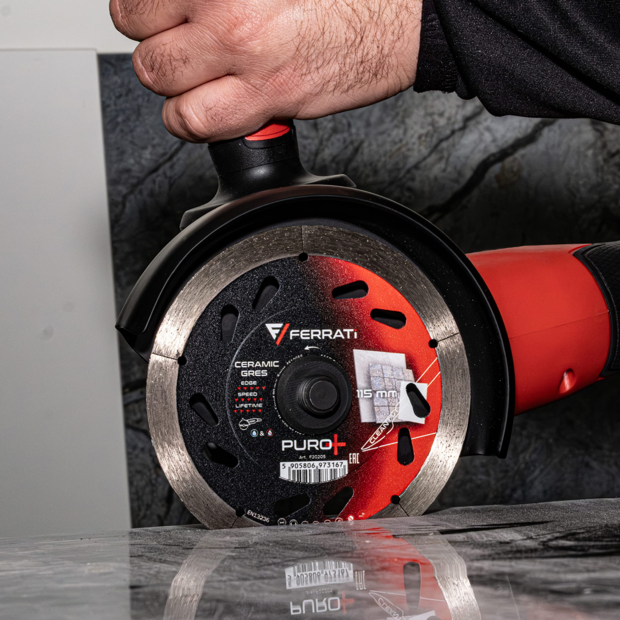 PURO+ to najnowsza odsłona naszej sprawdzonej tarczy PURO, stworzona w oparciu o doświadczenia i sugestie rzemieślników. Zachowując wszystkie cechy, które zdobyły zaufanie fachowców – cienki segment, gładką krawędź i pełną kontrolę cięcia – nowa wersja wprowadza istotne udoskonalenia w trzech kluczowych obszarach: precyzji, prędkości i trwałości. Wzmocniony korpus oraz nowe, przeprojektowane otwory wentylacyjne poprawiają stabilność tarczy, ograniczają przegrzewanie się segmentu i zapewniają efektywniejszą pracę. Dzięki temu PURO+ zachowuje stałą precyzję nawet przy długich i wymagających cięciach – od małych płytek po wielkoformatowy gres. Dostępna w rozmiarach 115 i 125 mm, PURO+ to narzędzie dla profesjonalistów, którzy oczekują powtarzalności, niezawodności i najwyższej jakości cięcia na całej długości pracy – niezależnie od rodzaju i formatu materiału. To tarcza dla tych, którzy chcą połączyć sprawdzone cechy klasycznej PURO z nowoczesnymi rozwiązaniami zwiększającymi efektywność i komfort pracy.