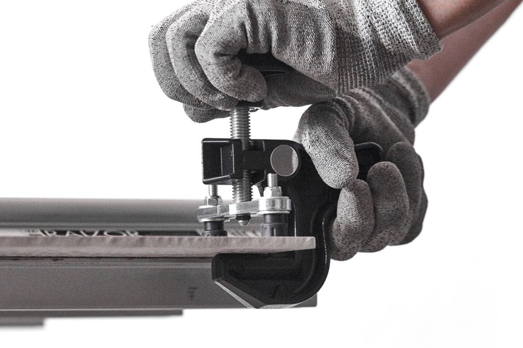 Aby łamać płytki grubsze niż 12mm (1/2”), można dokupić osobno łamacz śrubowy do płytek o grubości 6-20mm (kod produktu 169TM01AN). Wykonany z wytrzymałej stali ocynkowanej jest wyposażony w pokrętło do precyzyjnego i progresywnego wywierania nacisku dokładnie na linię nacięcia