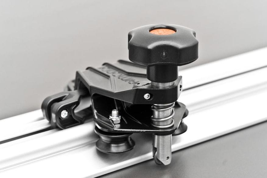 Wózek ręczny, wyposażony jest w systemy precyzyjnej regulacji (kalibrowane fabrycznie), pozwalające na idealne połączenie wózka z prowadnicą. Pozwala to zarówno na wyeliminowanie wszelkiego rodzaju luzów, jak i na idealne wyrównanie kółka tnącego z węglika wolframu do prowadnicy, co zapewnia maksymalną skuteczność, precyzję i jakość cięcia
