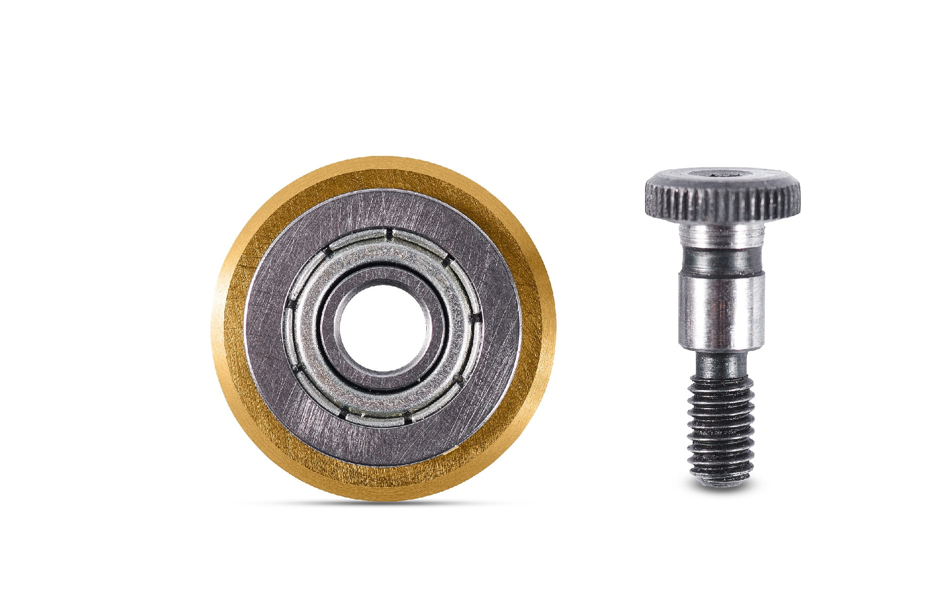 - Wózek tnący z regulacją docisku wykonany z ciśnieniowo odlewanego aluminium, wyposażony w tytanowe kółko Ø 20 mm, kółko ze zintegrowanym łożyskiem.