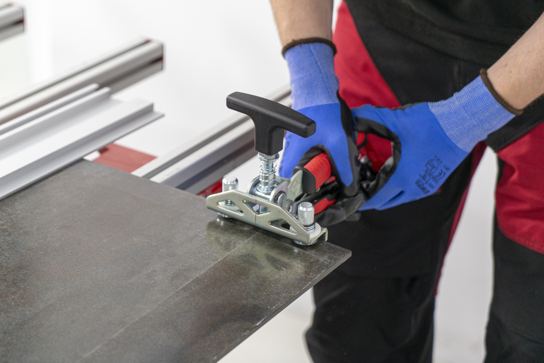 Powierzchnia robocza powinna być czysta, a płytka pewnie wsparta na stabilnej powierzchni, wystarczająco dużej aby ograniczyć przesuwanie lub wibracje podczas nacinania.