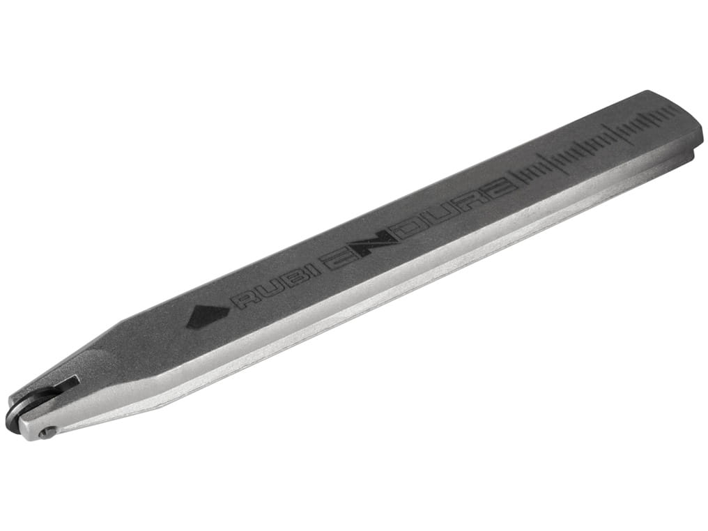 Trzpień noża serii noży ENDURE posiada potrójne rowkowanie (opatentowane przez RUBI), co zapewnia prawidłowy montaż na przecinarce ręcznej, jak również pewne dociśnięcie w wózku oraz nacięcie pozbawione efektu wibrowania. Właściwa kombinacja cech zapewnia uzyskanie najlepszych rezultatów.