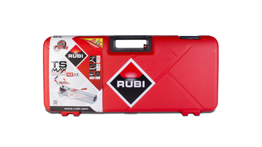 Profesjonalnym dopełnieniem przecinarki RUBI TS-MAX jest walizka z mocnymi zawiasami zapewniająca ochronę podczas transportu i przechowywania.