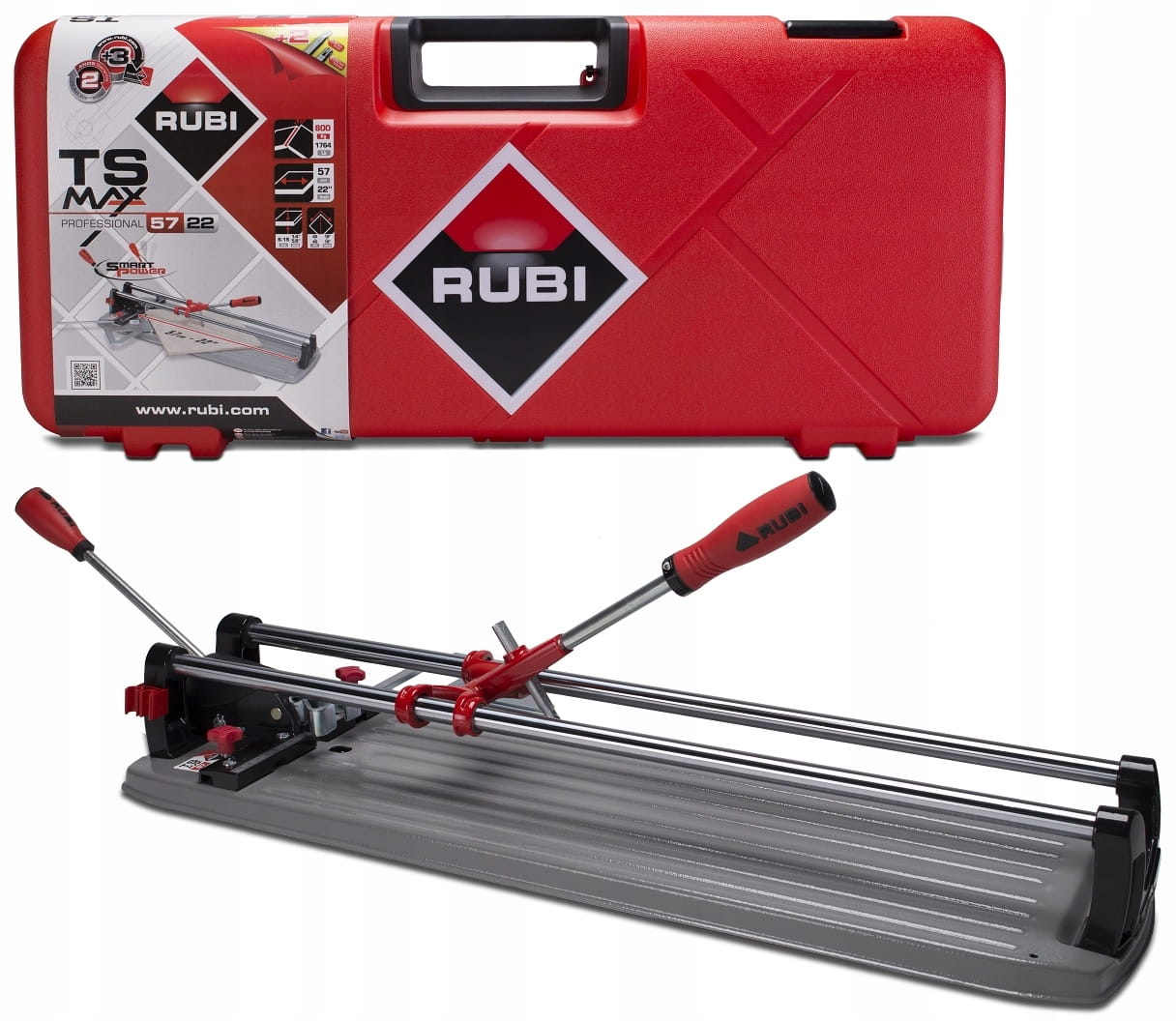 Profesjonalnym dopełnieniem przecinarki RUBI TS-MAX jest walizka z mocnymi zawiasami zapewniająca ochronę podczas transportu i przechowywania.