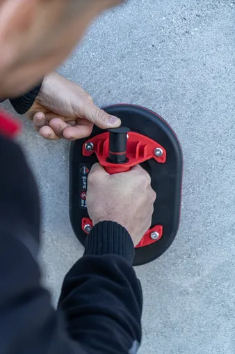 Specjalnie zaprojektowany wzór gumowej podstawy przyssawki oraz jej poczwórne obramowanie gwarantują bardzo dobre przyleganie do płytek chropowatych, szorstkich i strukturalnych. Zapewnia szybkie przyssanie i stabilne trzymanie płytek. Mechanizm zwalniający jest zabezpieczony przed zanieczyszczeniem i umożliwienie szybkie zwolnienie podciśnienia. Dzięki eliptycznemu kształtowi i udźwigowi aż do 140 kg* to niezastąpione narzędzie dla profesjonalistów, którzy potrzebują maksymalnej elastyczności kompromisów w zakresie bezpieczeństwa.
