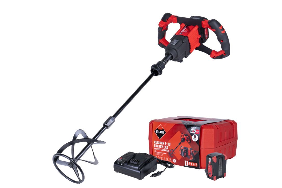 RUBIMIX E-10 ENERGY CAS to profesjonalna mieszarka akumulatorowa zaprojektowana do wydajnego mieszania różnego rodzaju zapraw, klejów, farb oraz innych materiałów budowlanych. Dzięki technologii CAS (Cordless Alliance System) oferuje pełną kompatybilność z akumulatorami innych marek stosujących ten system, co zwiększa jej uniwersalność i mobilność.