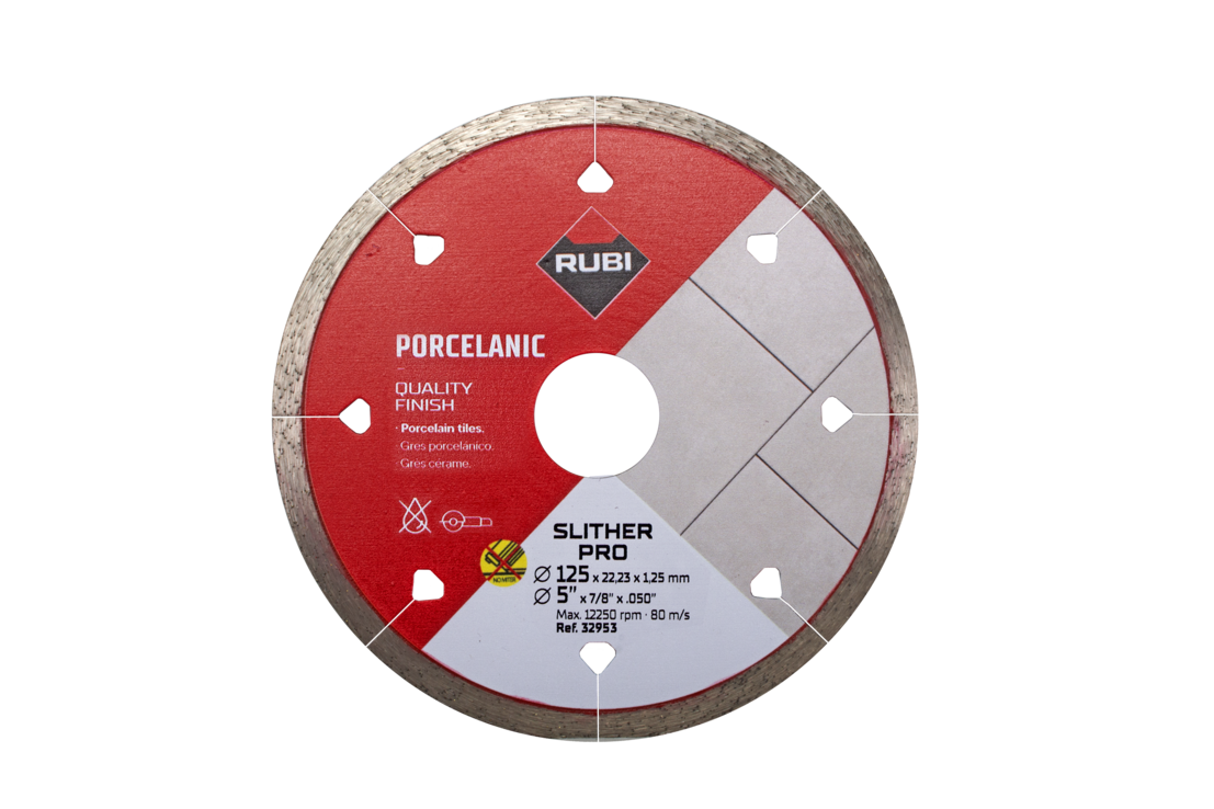 Zastosowanie: Tarcza RUBI SLITHER 115 PRO jest idealna do cięcia na sucho płytek porcelanowych, kamienia naturalnego oraz spieków kwarcowych. Ze względu na swoją konstrukcję, nie jest zalecana do cięć ukośnych.