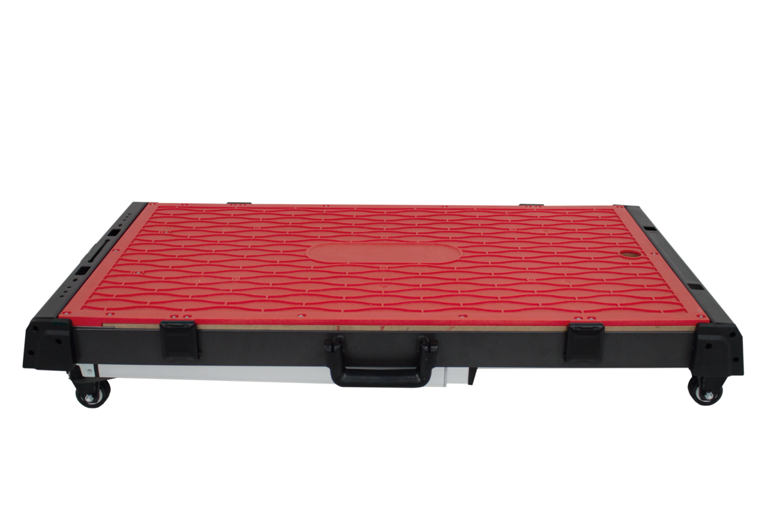 Stół w trybie wózka lub leżaka bardzo łatwo się prowadzi dzięki 4 kółkom, z których 2 są skrętne.