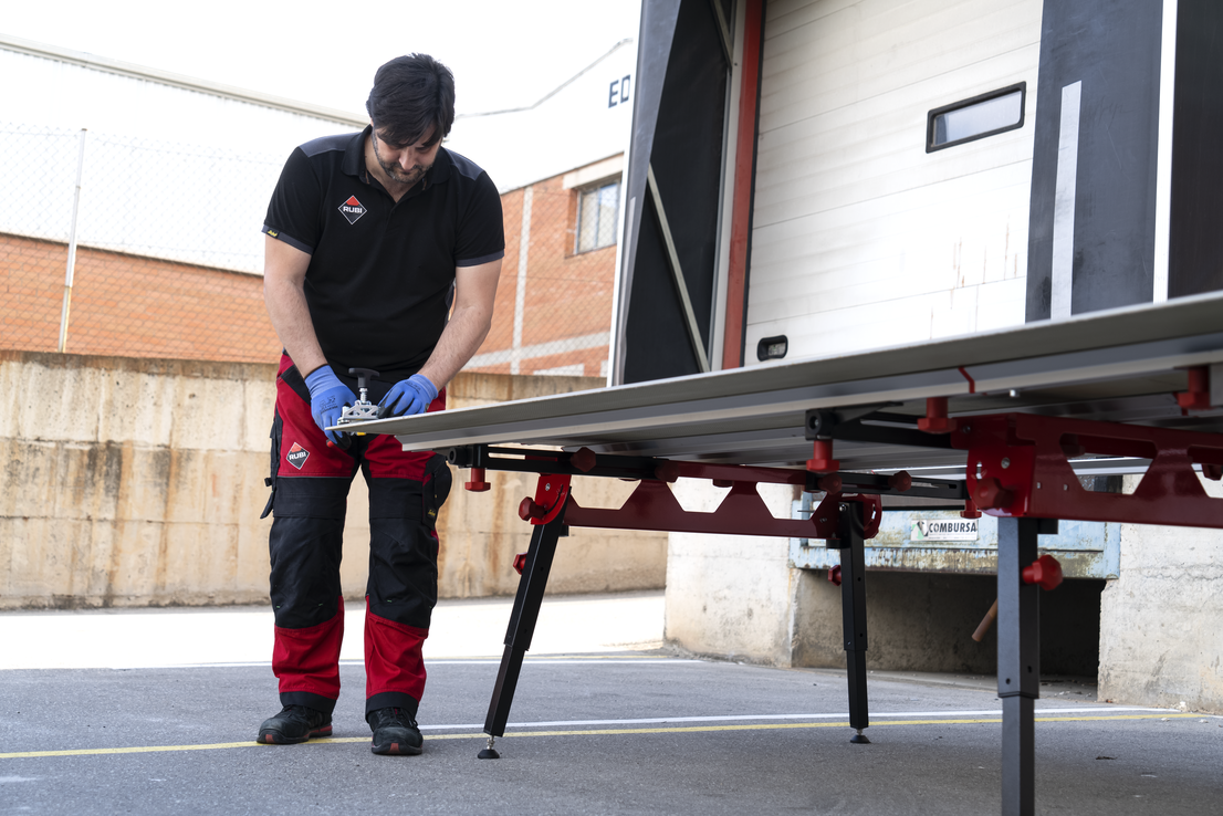 Opis: Stół roboczy RUBI SLAB VERSA-TILE został zaprojektowany specjalnie do pracy z płytkami ceramicznymi o dużych formatach. Wyposażony w regulowaną szerokość i wysokość roboczą, umożliwia dostosowanie do różnych potrzeb użytkownika. Solidna konstrukcja zapewnia stabilność i bezpieczeństwo podczas obróbki materiałów.