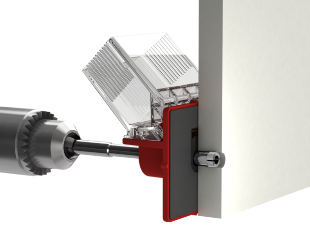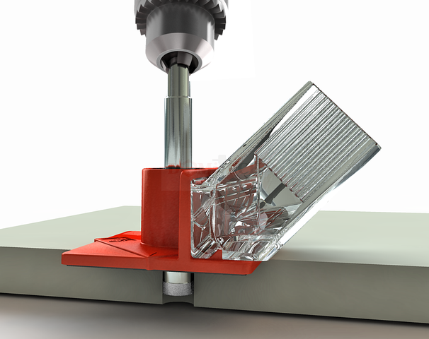 - Dwustronne przylepce umożliwiają łatwe mocowanie prowadnicy Easy Gres na dowolnej powierzchni, w której ma być wykonany otwór.
