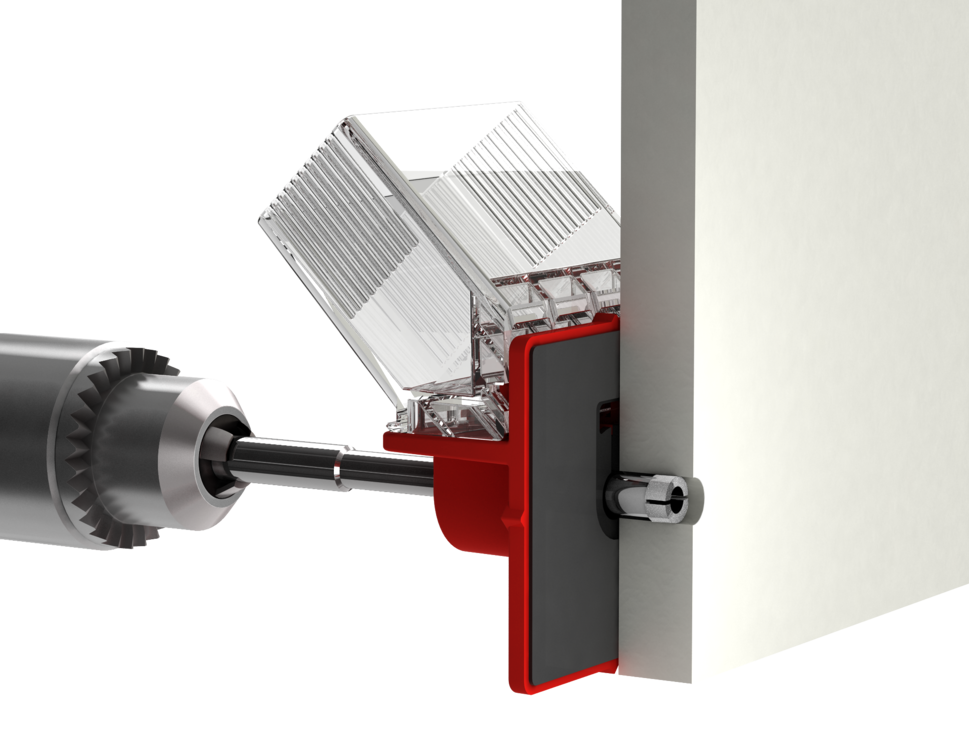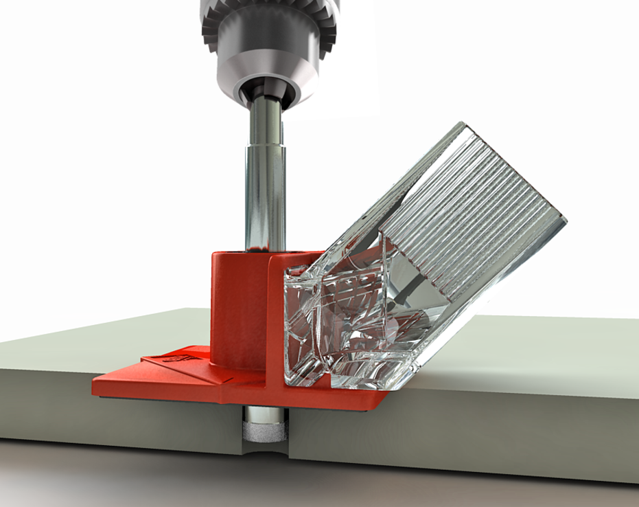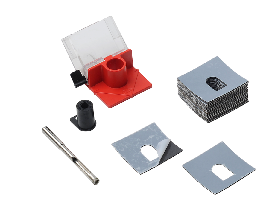 Dwustronne przylepce umożliwiają łatwe mocowanie prowadnicy Easy Gres na dowolnej powierzchni, w której ma być wykonany otwór.