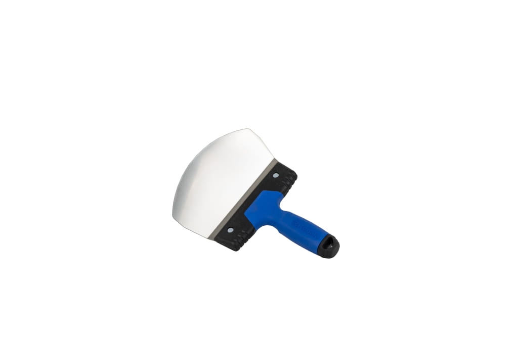 - Dzięki odpowiedniemu doborowi kątów oraz sprężystości blachy, szpachla idealnie dopasowuje się do wiadra, powodując dokładne wybranie masy z wiadra