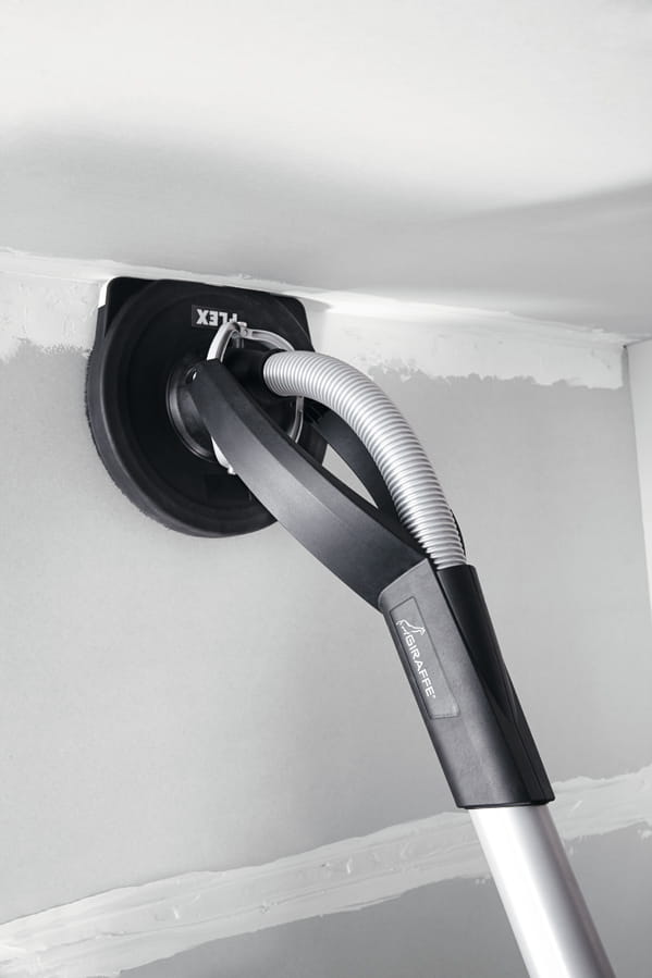 Przedłużenie. Dzięki przedłużeniu montowanemu na zatrzask można teraz pewnie i wygodnie szlifować nową szlifierką FLEX Giraffe® powierzchnie w pomieszczeniach do 3,20 m wysokości.